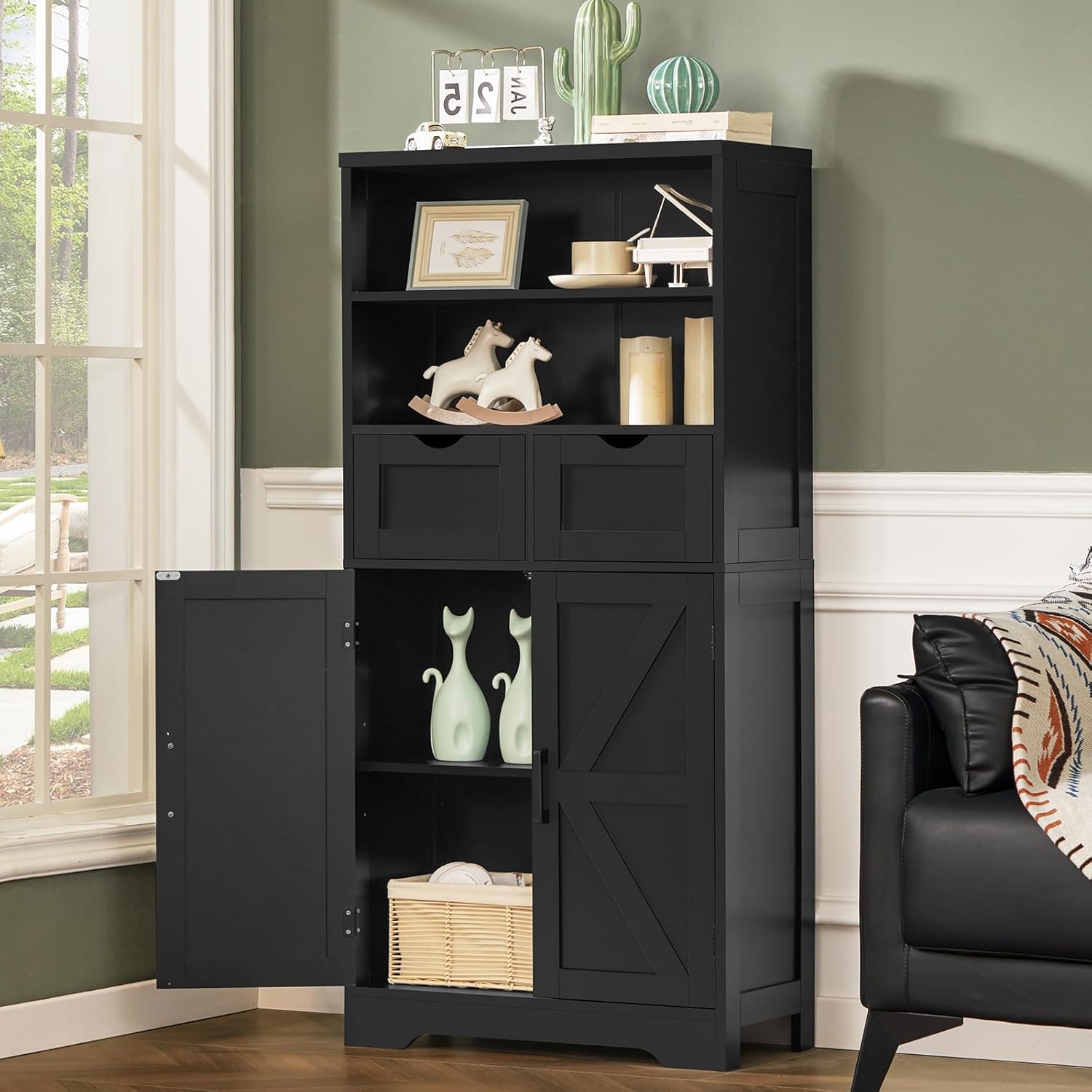 - बहुमुखी नियुक्ति: Suitable for use as a kitchen pantry, bathroom cabinet, bookcase, or entryway cabinet.